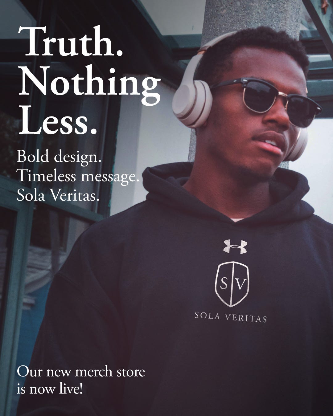 If you want to wear what you believe, visit the Sola Veritas Store for hoodies, jackets, mugs, and more. Every purchase fuels the mission and spreads the message.