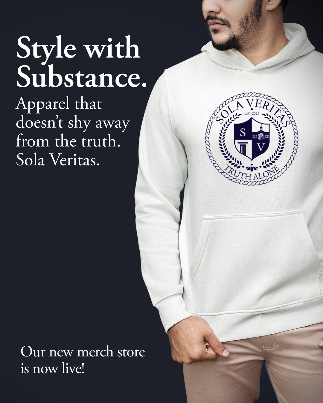 If you want to wear what you believe, visit the Sola Veritas Store for hoodies, jackets, mugs, and more. Every purchase fuels the mission and helps spread the message.